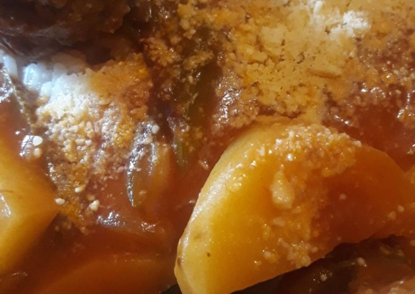 - Cuando la papa esté blanda y se pueda pinchar fácilmente apagamos el fuego, dejamos reposar unos minutos y servimos acompañado del arroz frito hecho de manera tradicional.