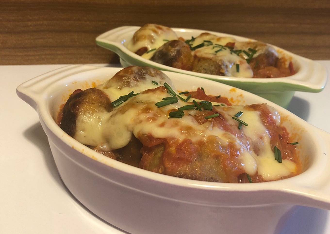- Luego de pasado unos minutos incorporamos las albóndigas a la salsa (aún en el fuego) sin moverlas demasiado. Dejamos 5 minutos y listas! Yo le agregue un poco de queso muzzarella y las gratiné, acompañadas de un poco de arroz (opcional).