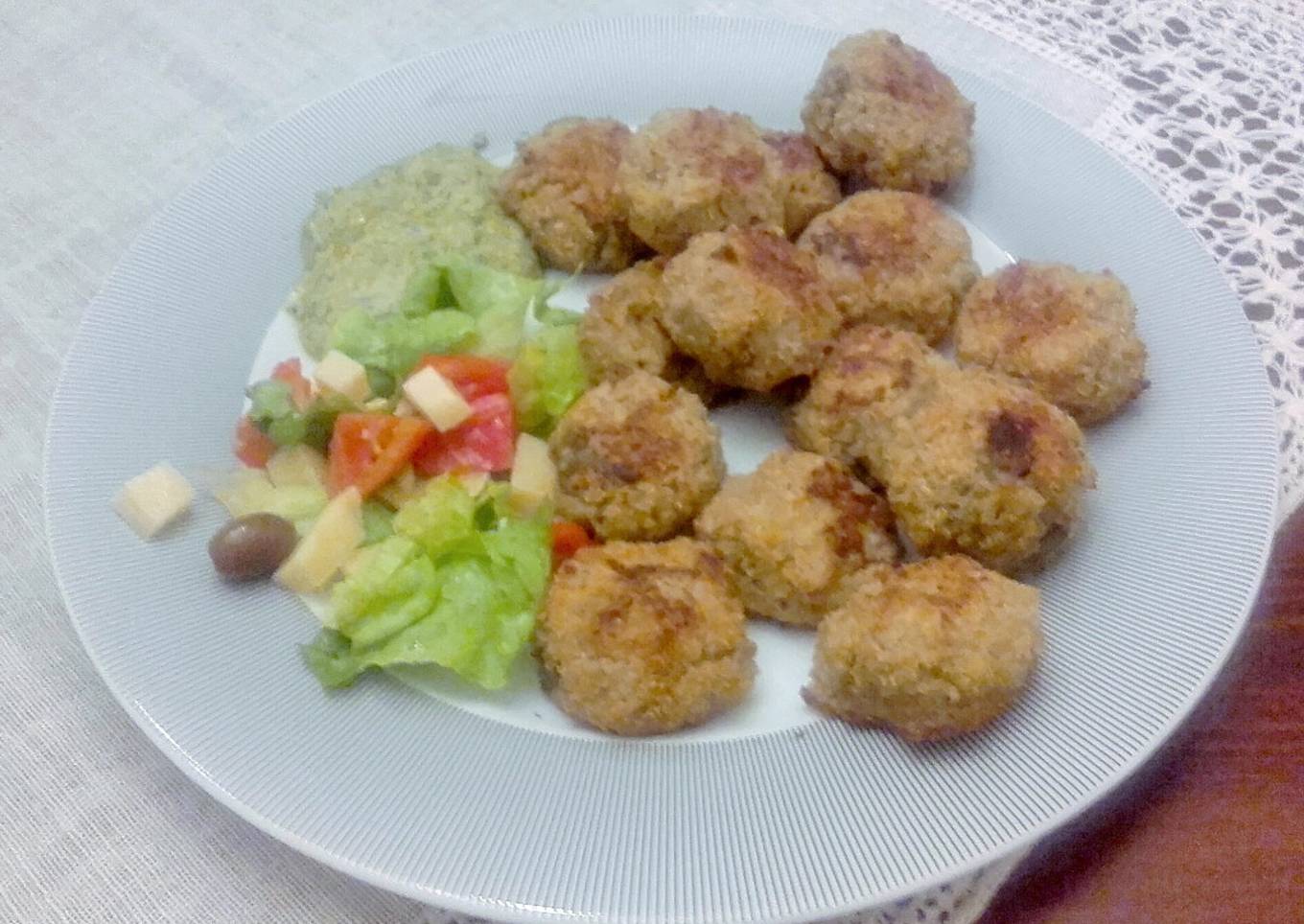 Voltear delicadamente las albóndigas a mitad de cocción para que doren por ambas partes. - Servir acompañadas de una clásica ensalada de lechuga, tomate, queso y aceitunas. Y así como también con una salsa de guacamole.