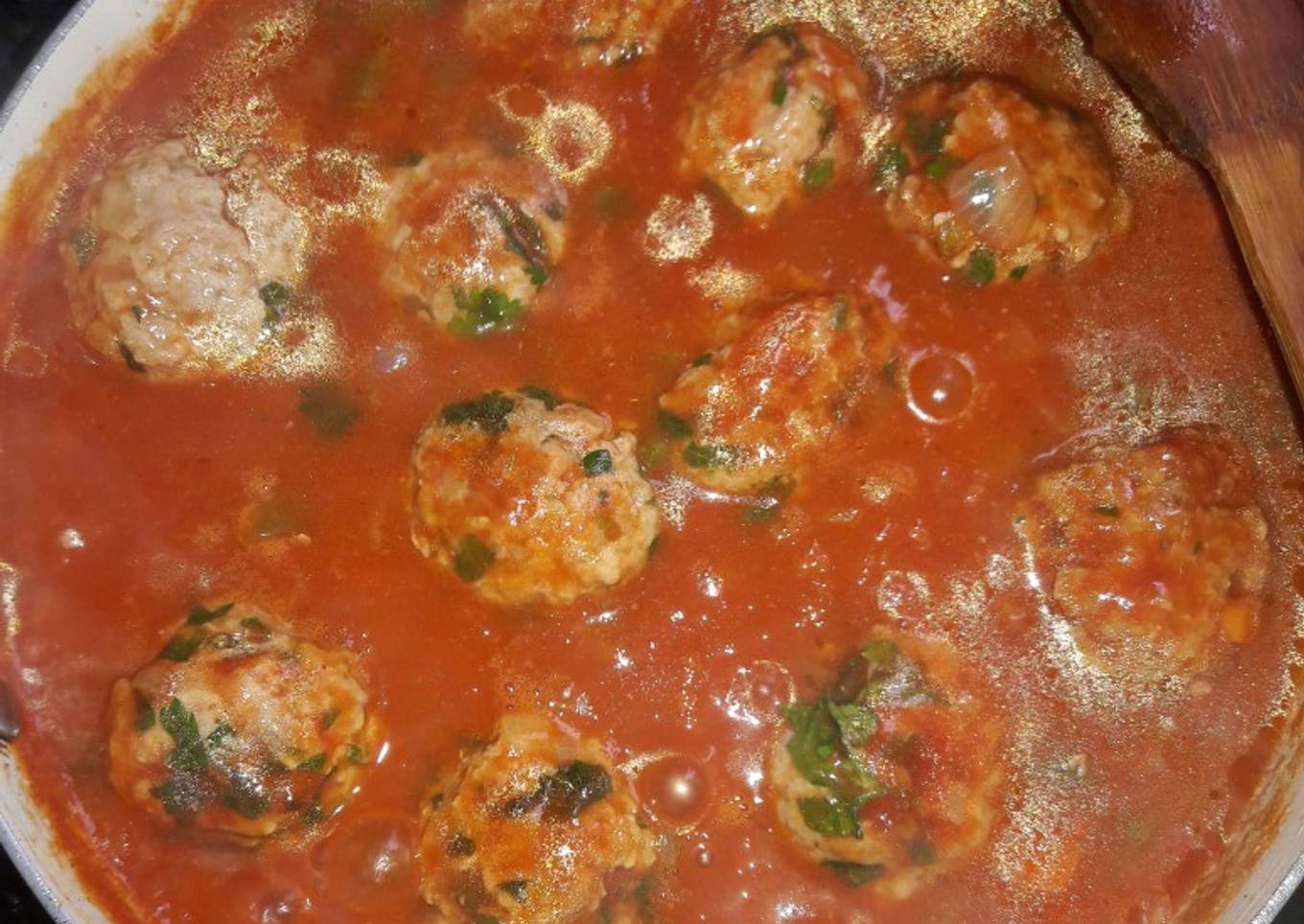 - Cuándo este todo tierno agregar las albóndigas en un bol colocar la carne picada sal, perejil picado hacer bolas del tamaño deseado y colocarlas con la preparación anterior.