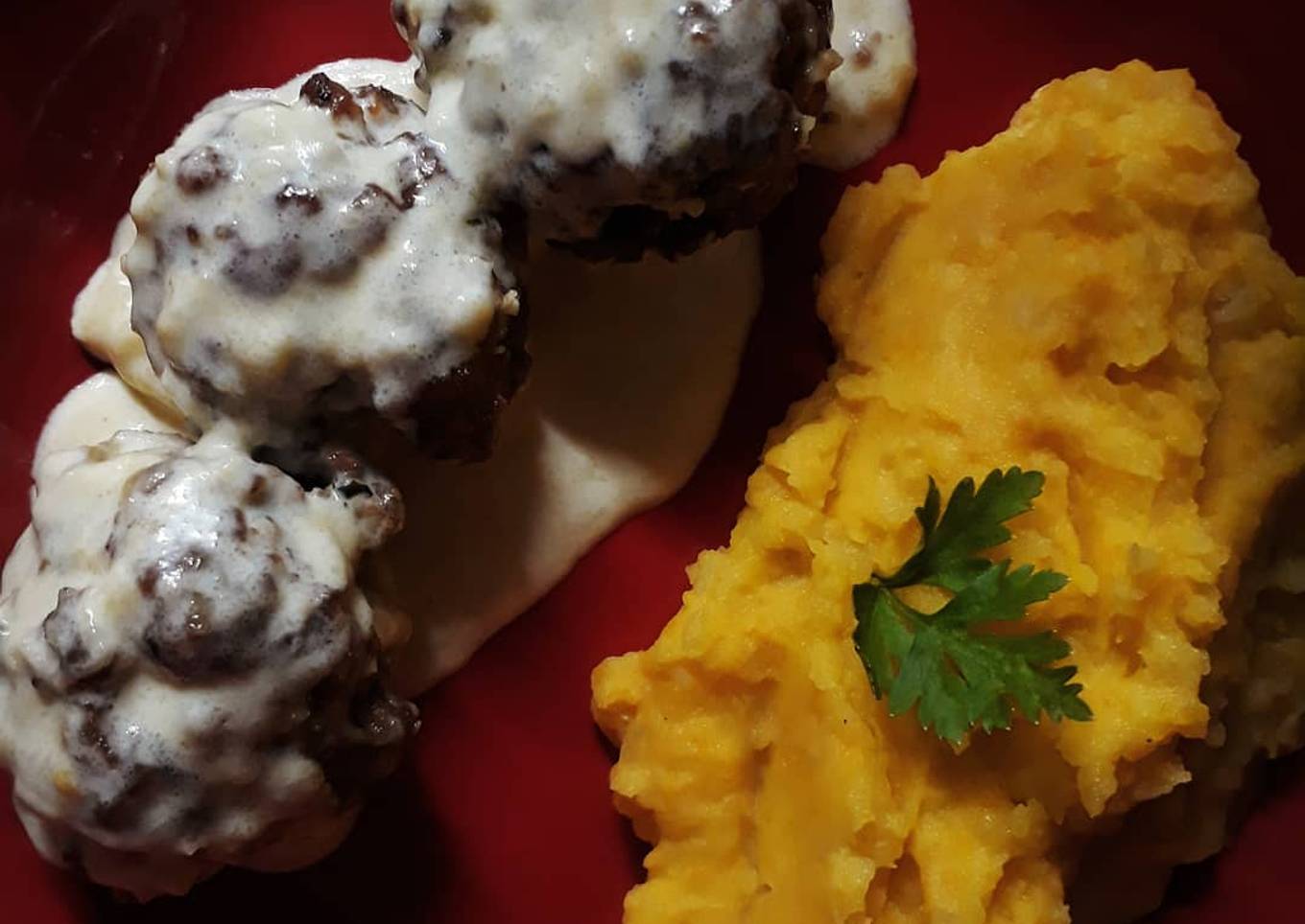 Albóndigas con crema y puré mixto