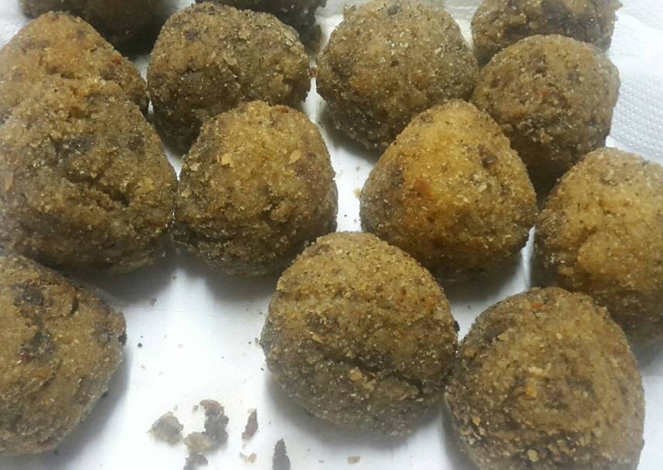 - Dependiendo de la humedad de la "masa", se le irá agregando la harina. Tiene que quedar lo suficientemente moldeable como para armar una bola entre las manos, pero con la "pegajosidad" suficiente para que el pan rallado se adhiera. Si por accidente quedo demasiado seco, con agregar un chorrito de leche será suficiente.