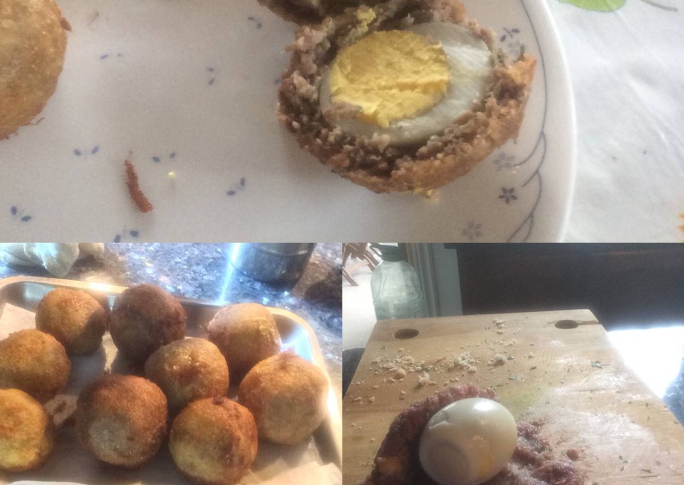 - Agarramos un pedazo de carne y vamos envolviendo el huevo no dejes muy gruesa la carne que envolves por qué sino lleva mucho tiempo para hacerlas