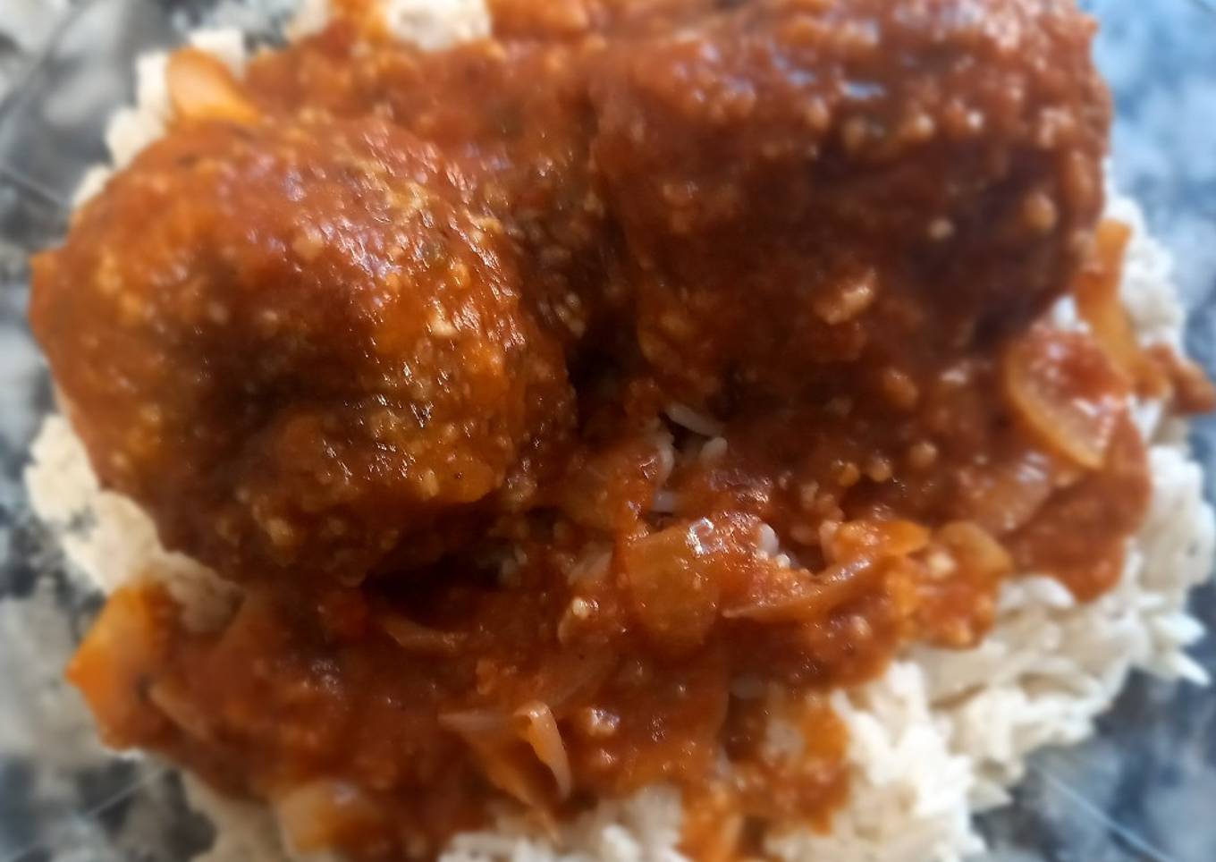 Albondigones de Lenteja en Salsa con Arroz Especiado