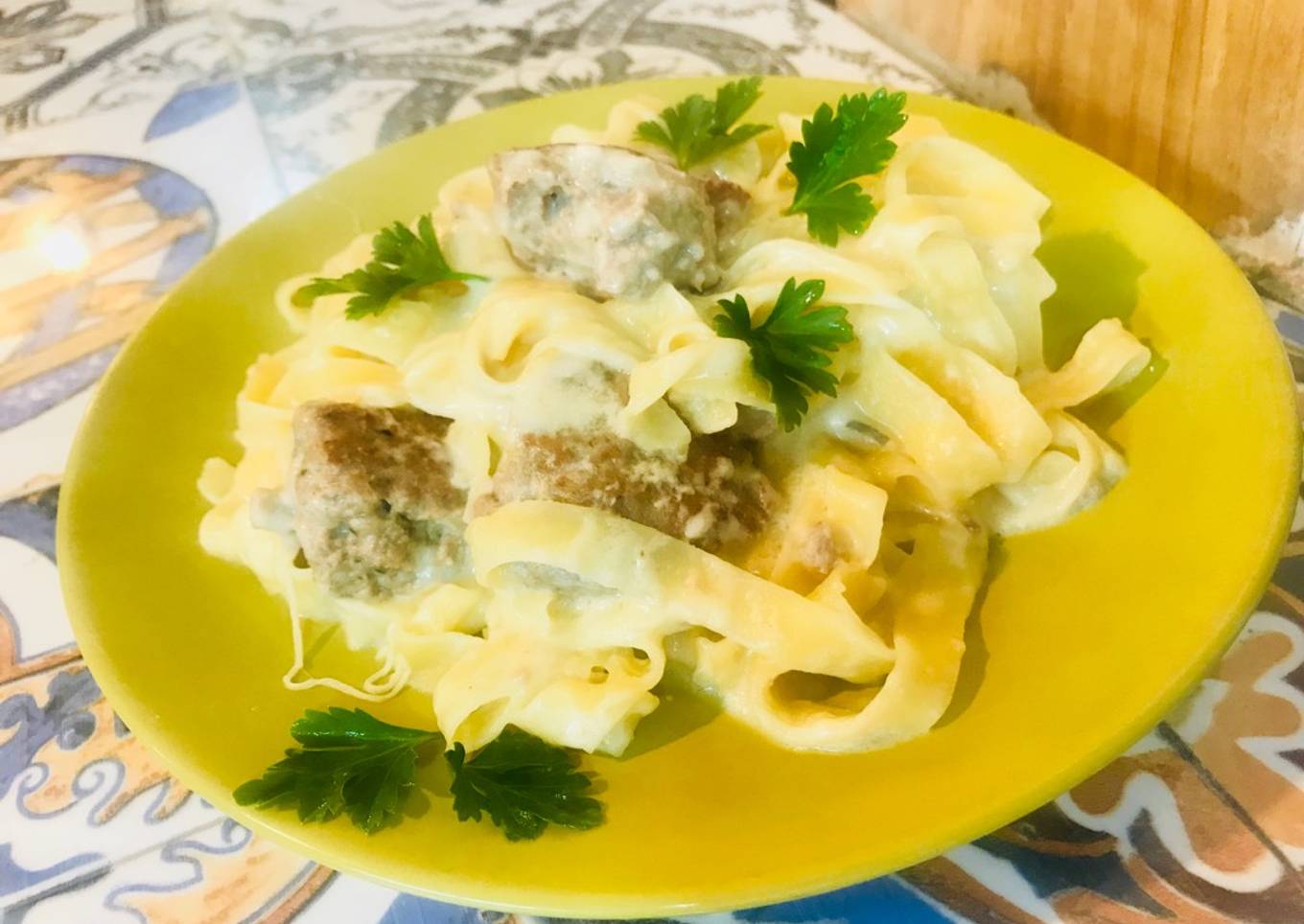 Pasta con albóndigas suecas